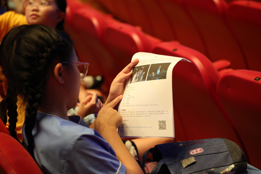 现场,观看联排的学生中最小的才7岁,最大的也就15岁。来自深水埔街坊福利小学的张熙林说:“我觉得演员跳得很深情。布景设计也很有巧思,比如舞台上的颜色转换,其实代表了主人公不同的心情。红色代表她很开心,灰色就说明她很难过。”问他有没有收获?小男孩点头道:“当然有啊,她教会我面对逆境的时候要勇敢坚强。”